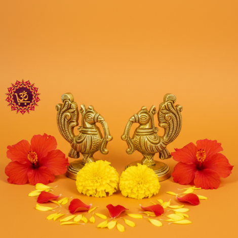 Exquisitely handcrafted in pure brass, this miniature depiction of the Annam (Hamsa)—the divine swan of Indian mythology—symbolizes discernment and purity. Perfectly sized for compact pooja shelves, office desks, or car dashboards, its radiant golden finish adds a touch of traditional elegance to any setting. An auspicious decor piece and a meaningful gift for new beginnings.